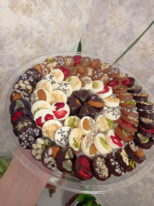 مندیات آجیلی با مغزهای میوه توت فرنگی و کیوی و همچنین تخمه و بادوم و... طعم متفاوتی از شکلات را به شما تقدیم میکند،ماندگاری این محصول 6 ماه به بالا میباشد، و در سه طعم شیری و سفید و تلخ قابل سفارش میباشد.