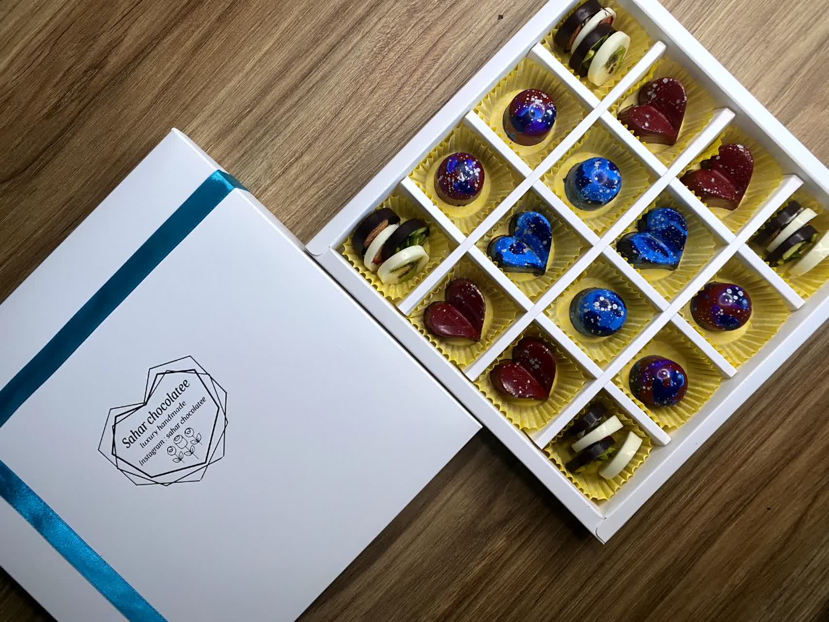 شکلاتها به صورت سفارشی درست میشوند و در باکسهای ۱۶ عددی بصورت 12 شکلات بن بن و 16 مندیات آجیلی. بدون مواد نگهدارنده.درصورت هرگونه تغییر در قسمت توضیحات به آن اشاره نمایید.