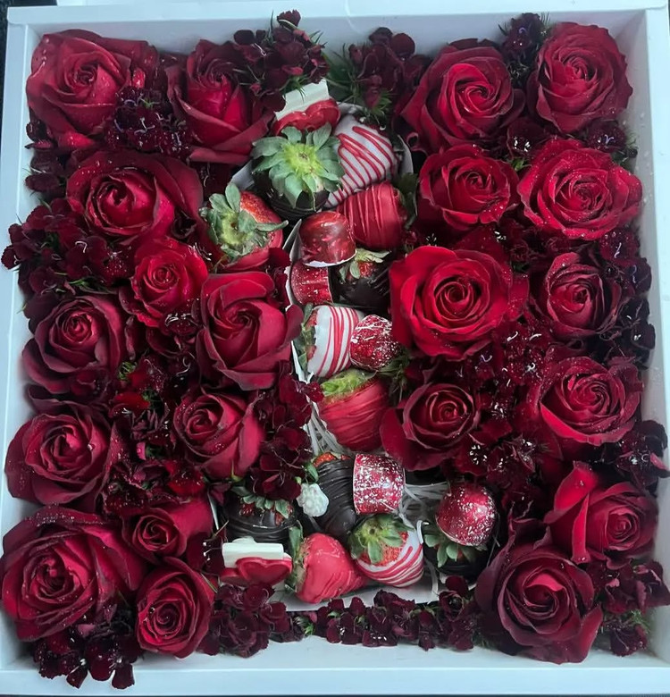 باکس چوکوبری تزئین شده با گلهای رز هلنذی که محتویات داخل آن عبارتند از:دوعدد پاپسیکلز،6 بن بن با مغز نوتلا،12 چوکوبری(توت فرهنگی دیپ شده با شکلات)، 3 مینی تبلتی به همراه 23 شاخه گل رز هلنذی و سایر نزئینات،این باکس بدون هیچ رنگ یا افکت خاصی عکسبرداری شده،همچنین شما میتوانید طبق نظر خودتون این باکس رو تغییر بدین،قیمت این باکس در دیماه 2150 تومان میباشد و به نسبت در ماه بهمن به علت افزایش قیمت گل بالاتر خواهد رفت،درصورت استعلام قیمت با شماره 09013073923 تماس حاصل فرمایید.