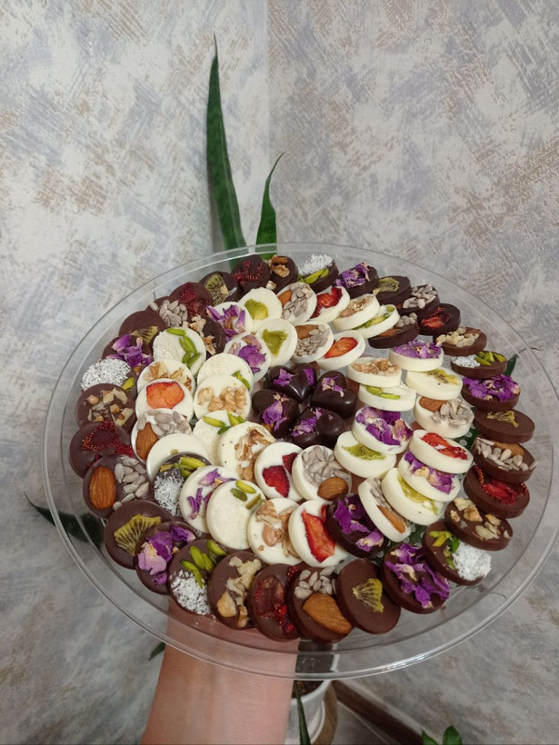 سینی 76عددی آجیلی،ساخته شده از سه طعم شکلات تلخ،شیری و سفید همچنین برای این مدل شکلاتها مغزیجات متنوعی استفاده شده مثل:گردو،بادوم،تخمه و تخمه کدو،کیوی و توت فرنگی و...،حداکثر تایم موندگاری این محصول6 ماه و بهترین انتخاب برای هدیه و عید هستش،همچنین درصورت تغییر در سفارش با هرگونه سوال میتوانید با شماره تلفن 09013073923 تماس حاصل فرمایید.