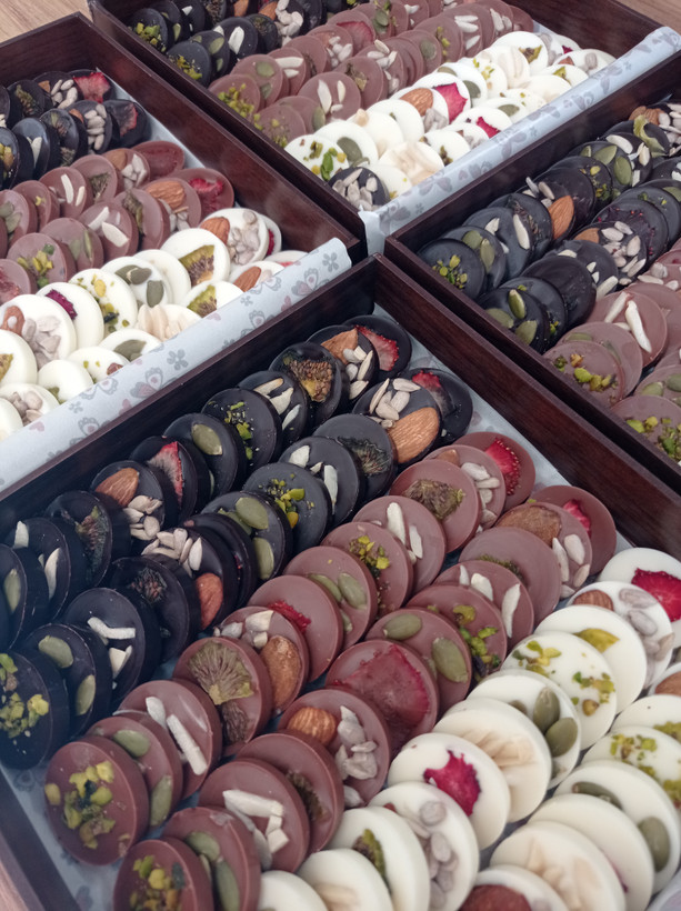 شکلات آجیلی عید آماده شده در سه نوع طعم از شکلات سفیدو شیری و تلخ که برای خوشمزه تر شدن و زیبایی از 6نوع مغزیجات و میوه های ارگانیک خشک شده برای این مدل شکلاتهای استفاده شده،تفاوت قیمت این محصول به علت باکس چوبی میباشد،درصورت هرگونه تغییر در سفارش لطفا با شماره 09013073923 تماس حاصل فرمایید.