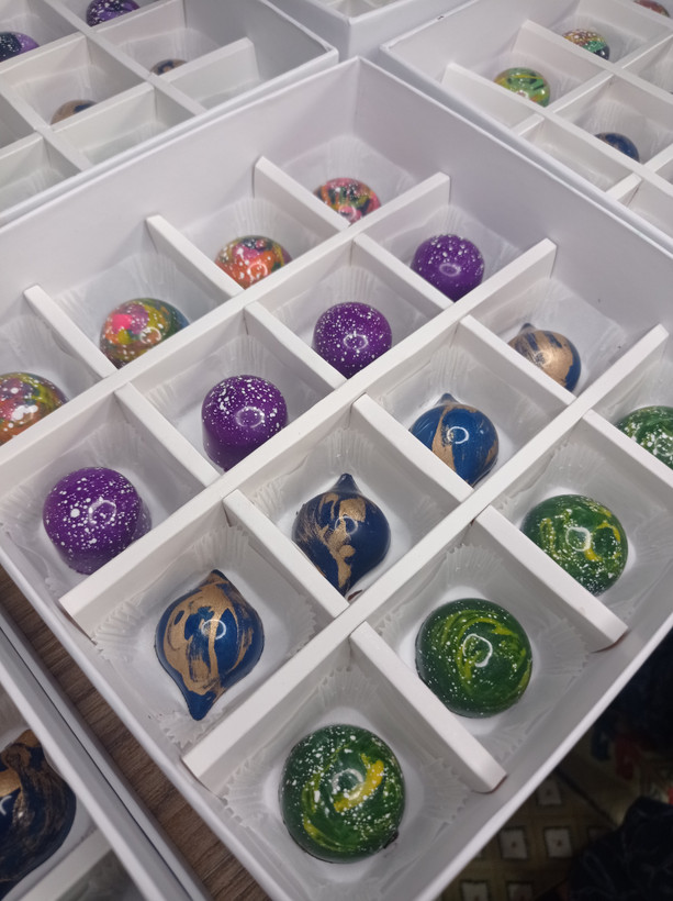 باکس بُن بُن 16 عددی آماده شده در 4قالب با تنوع و ترکیب رنگ بینظیر،مغز شکلاتها از کره لوتوس،نوتلا و قهوه میباشد،این ترکیب آماده شده از بهترین و درجه یک ترین شکلاتهای رییل در بازار میباشد،قابل ذکر کلیه محصولات بدون افزودنی و اسانس میباشند و در طرح و رنگ دلخواه شما آماده میشوند و در هاردباکسهای طلاکوب شده برای شما ارسال میگردد،ماندگاری این محصول دوماه میباشد و درصورت هرگونه تغییر در سفارش یا سوالات احتمالی با شماره 09013073923 تماس حاصل فرمایید.